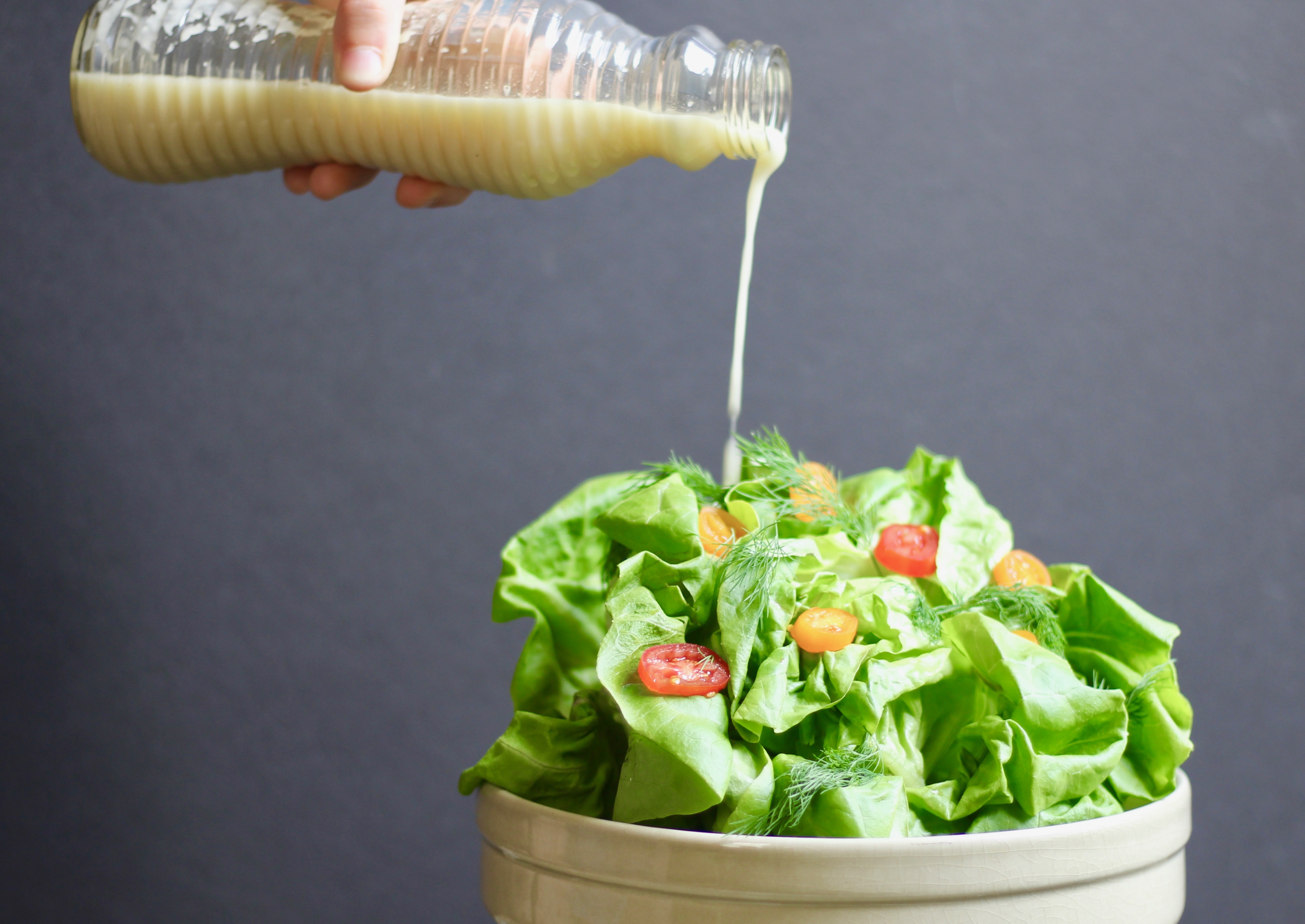 Sweet Vidalia onions are back in season and I’m putting them to good use. Know how they say you can eat them raw? Ever tried that? Me neither, but their mild flavor allows them to take up residence in salads, salsas and sandwiches without imparting a strong oniony aftertaste. You have nothing to fear from this seasonal salad dressing in the way of offending others!