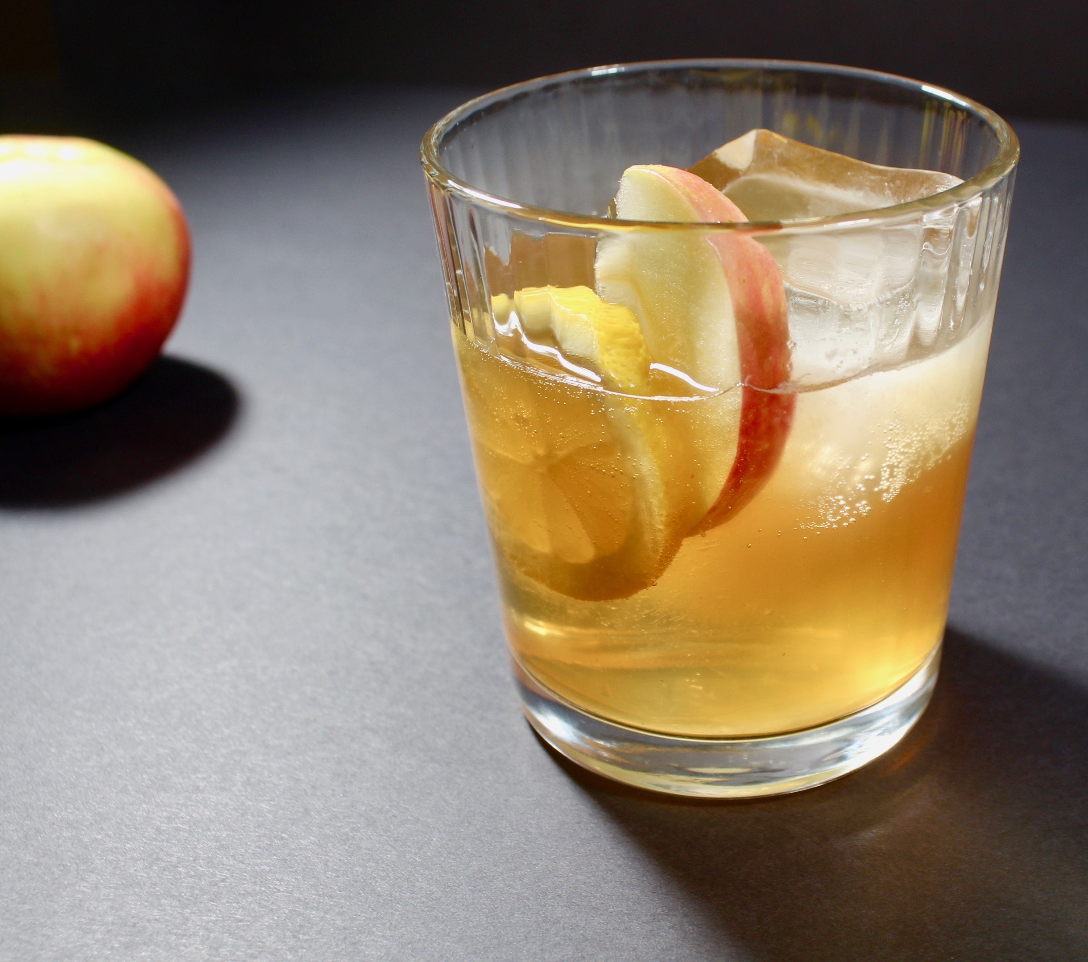 - In cocktail glass mix apple brandy with either fresh lemon juice or lemon simple syrup.