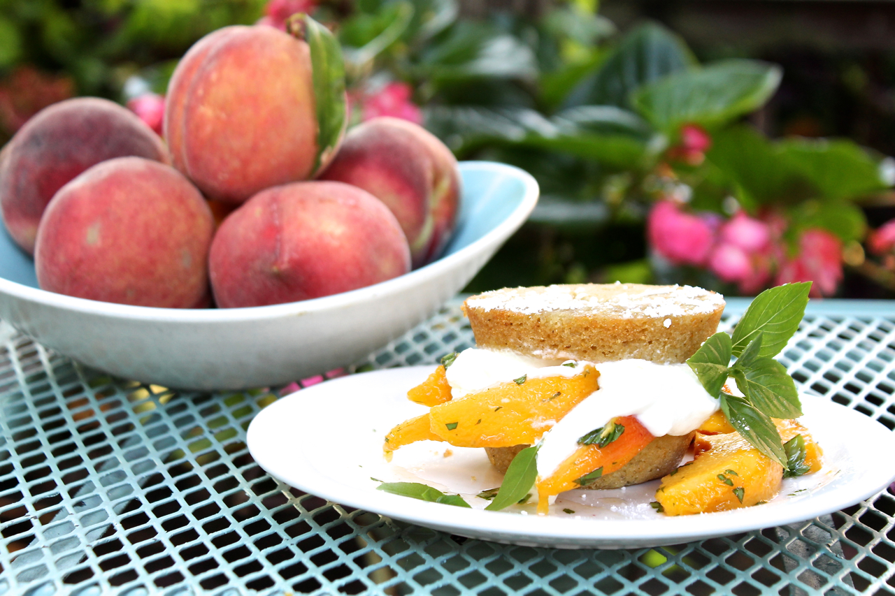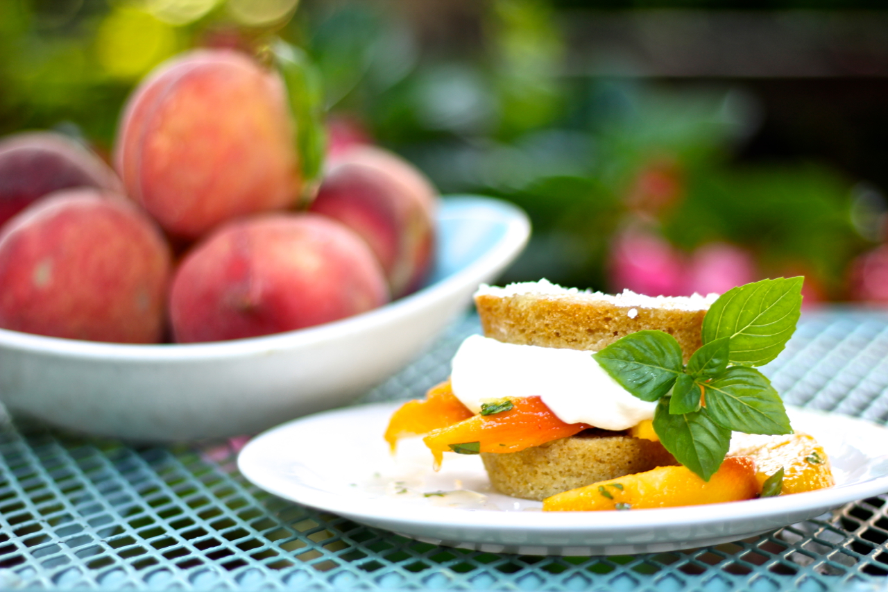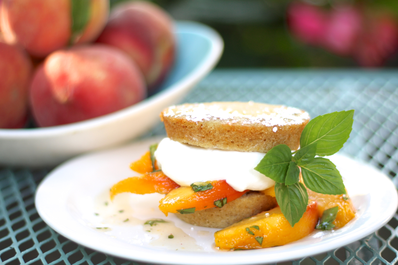 Basil Peach Cornmeal Shortcakes