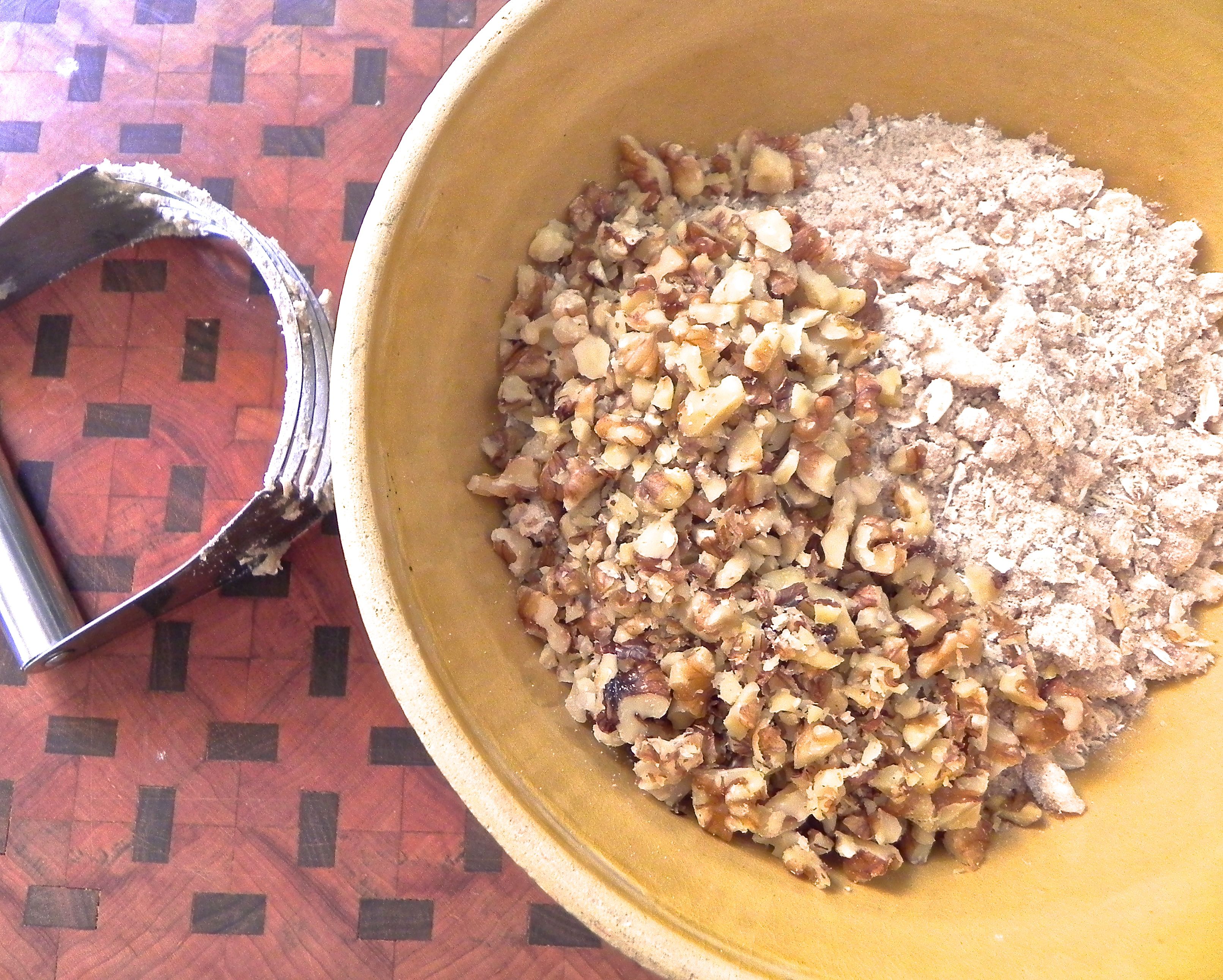 - In separate bowl, whisk together flour, cinnamon, brown sugar, salt and oats.
