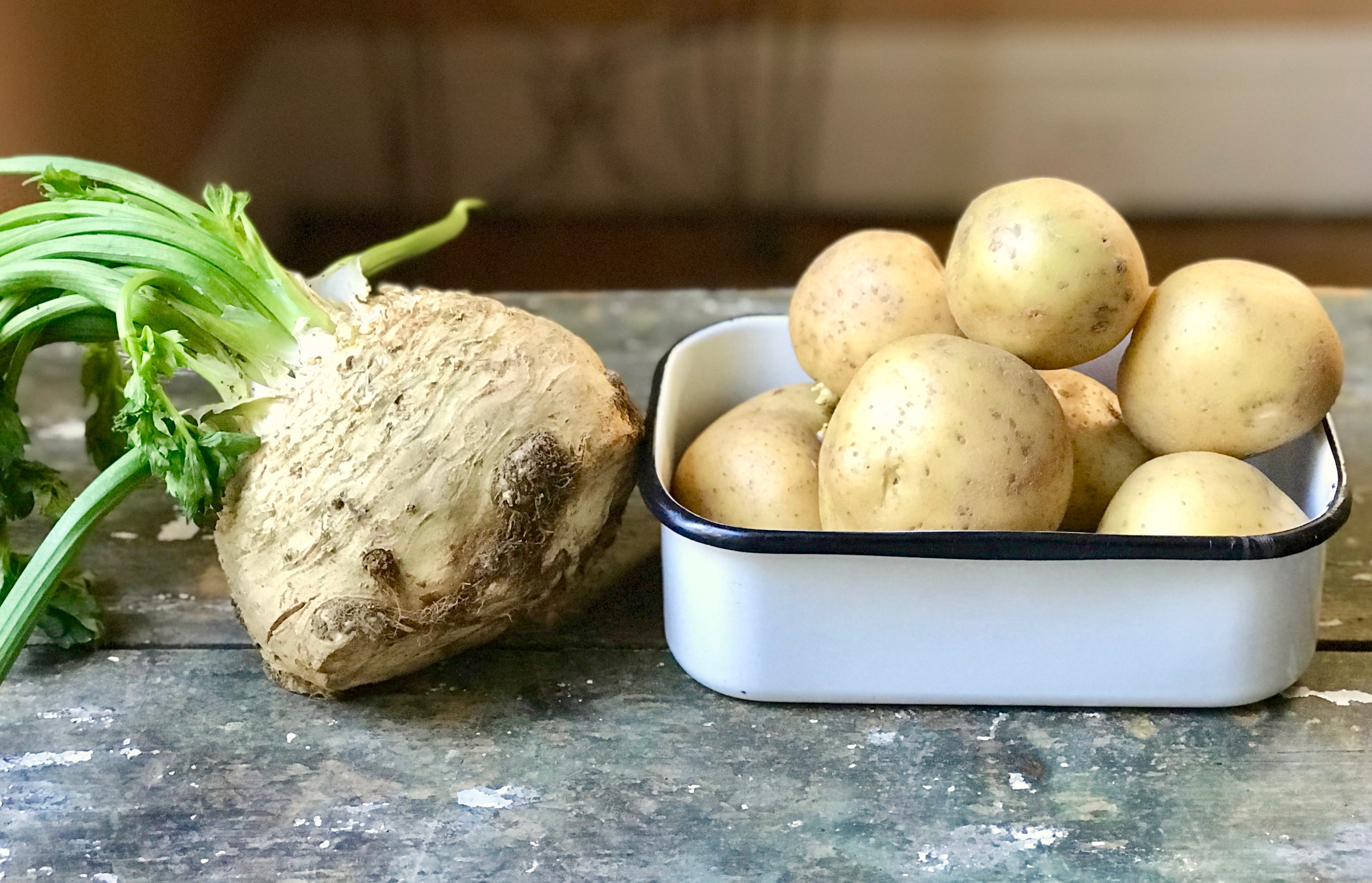 - if your celery root is less than one pound, simply add more potato to make up the difference
