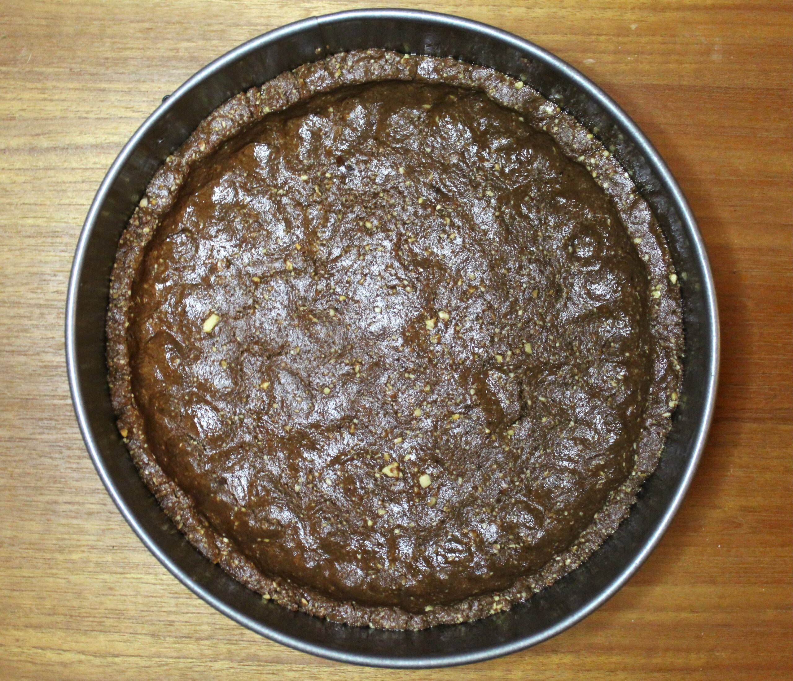 This no-bake crust and no-bake filling make an easy and elegant dessert for any occasion. We’ve played with a similar date and nut crust before. The food processor is your friend here. Fine grind allows a tight pack of the pliant crust ingredients.