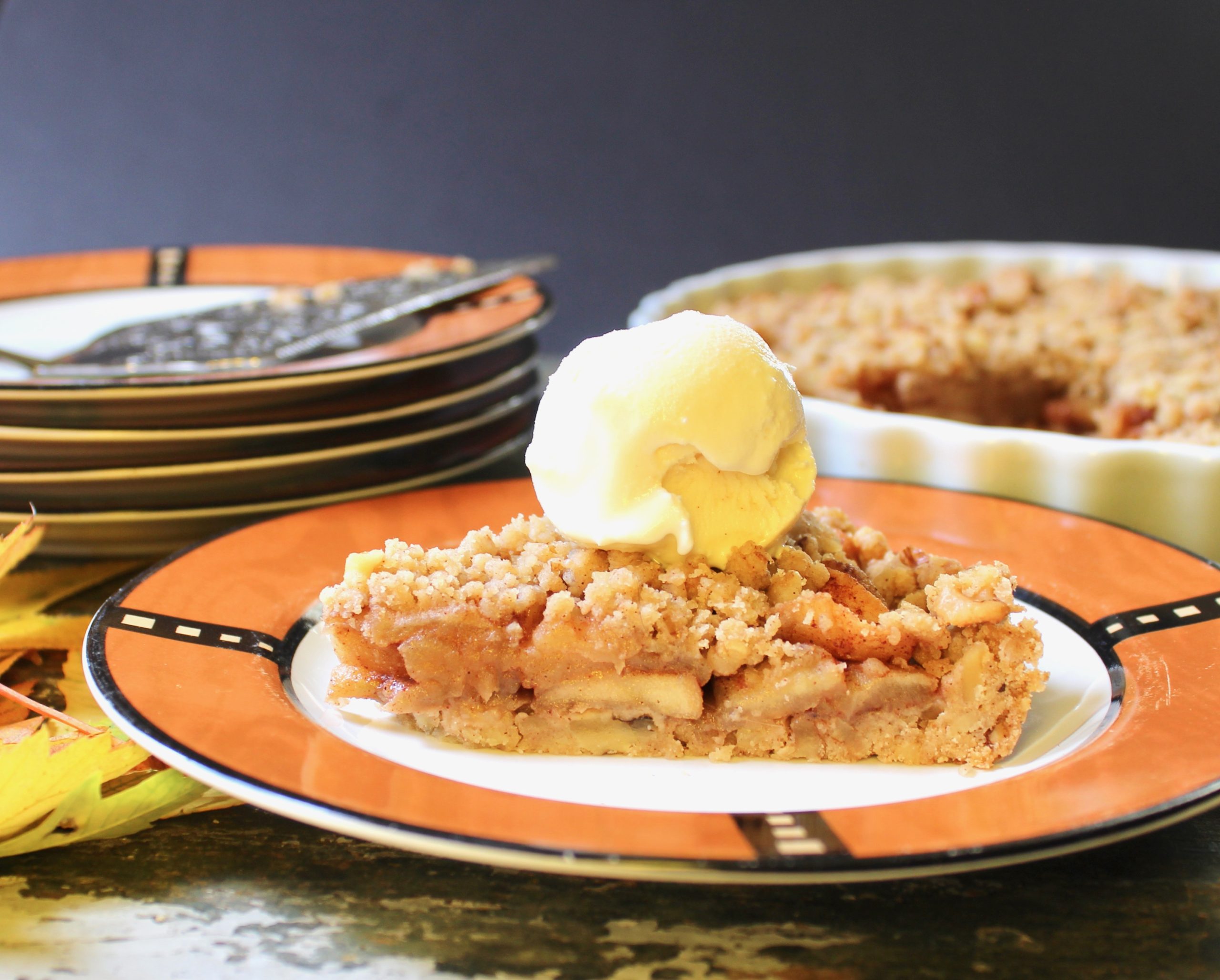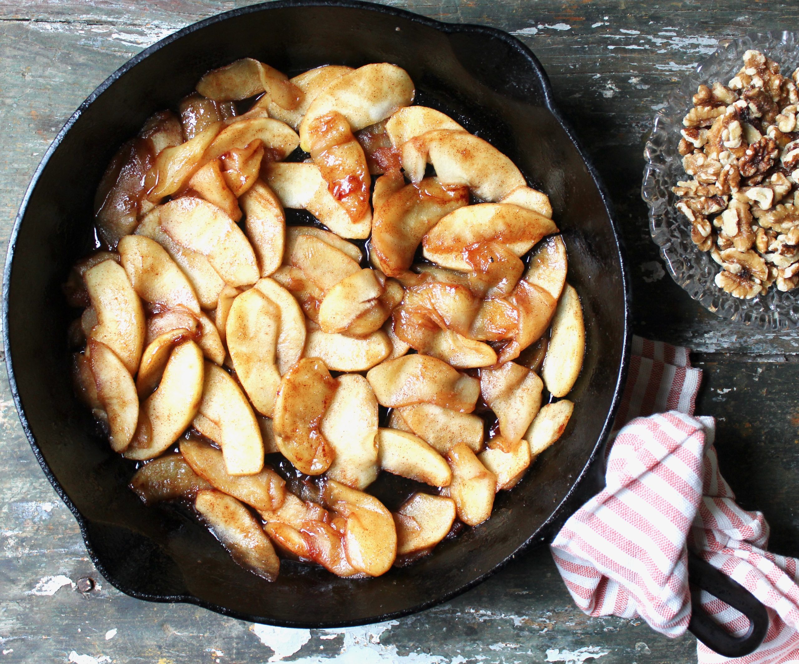 don’t fret if some of the apples fall apart since they will be snugly nestled between layers of cinnamon walnut crust