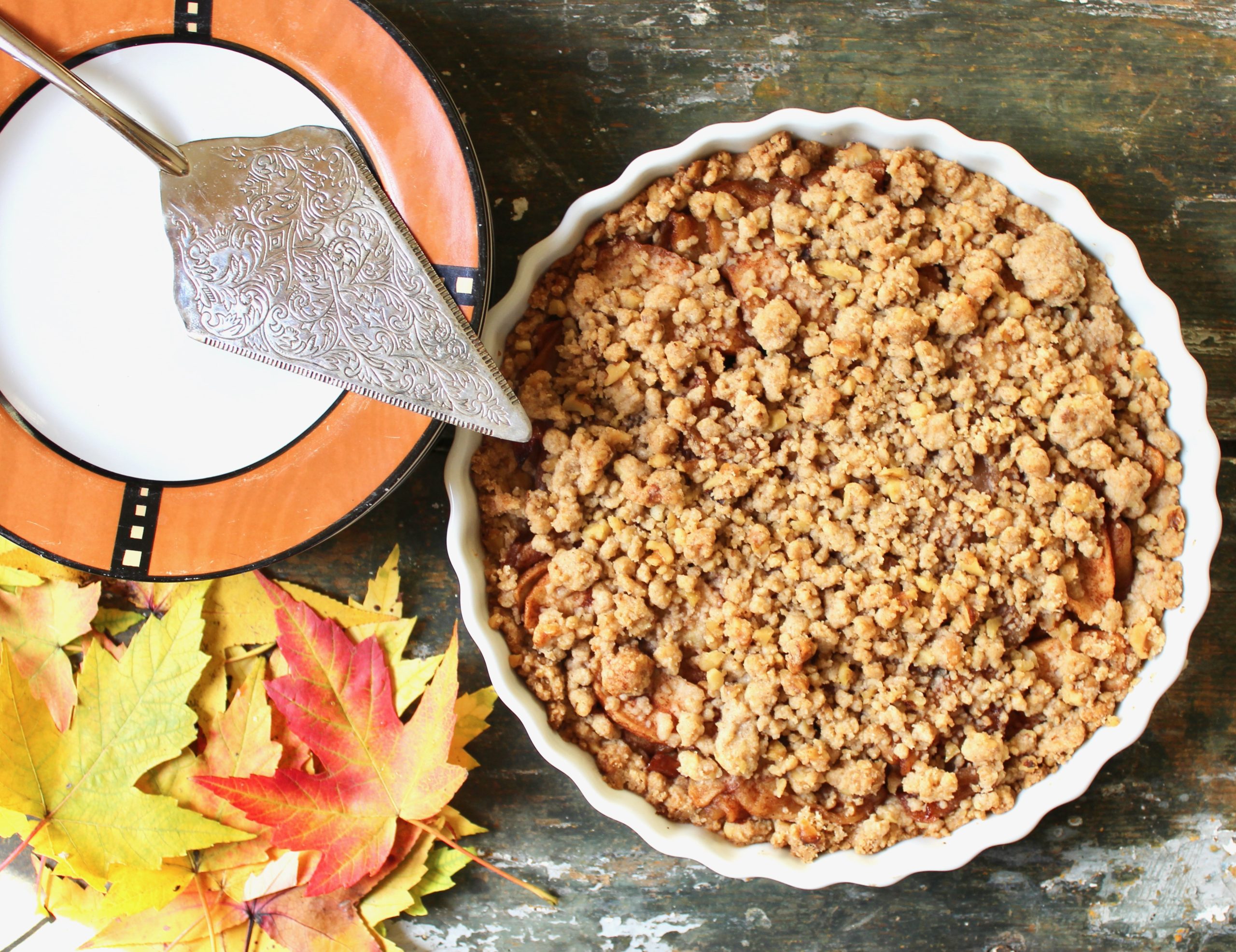 My kind of apple dessert involves patting the crust into the pan. Knock yourself out if you simply must roll out pie crust. I’ll be over here reading a nice magazine while you labor.