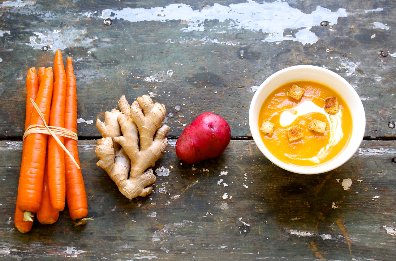 Creamy carrot soups now show up on The Good Eats Company menus. Carrot soup with tahini and sesame seeds, carrot soup with fresh garden mint and today’s recipe of gingered carrot soup.
