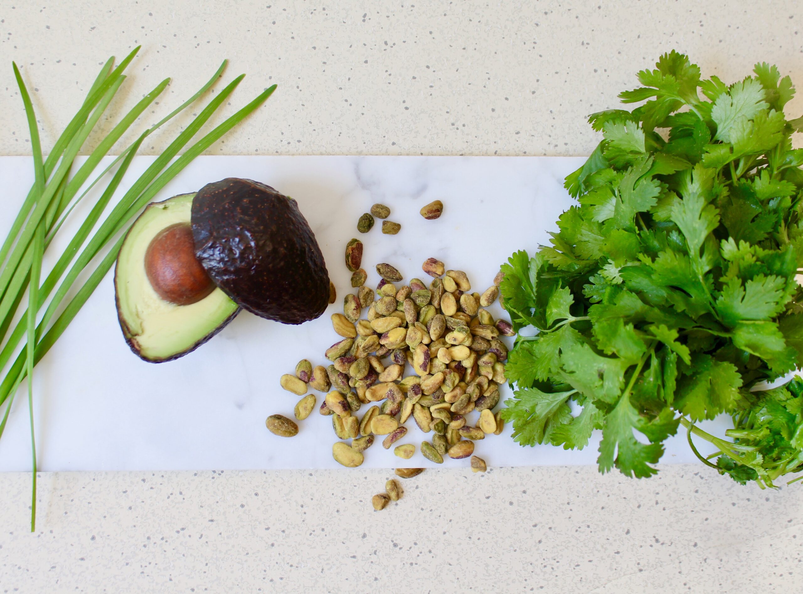 - In bowl of small food processor, mini chop or beaker attachment of stick blender, combine pistachios, avocado, lime juice, herbs, oil, garlic and blend until smooth, stopping to scrape sides with spatula to incorporate all; season to taste with salt; may be made ahead 2-3 days.