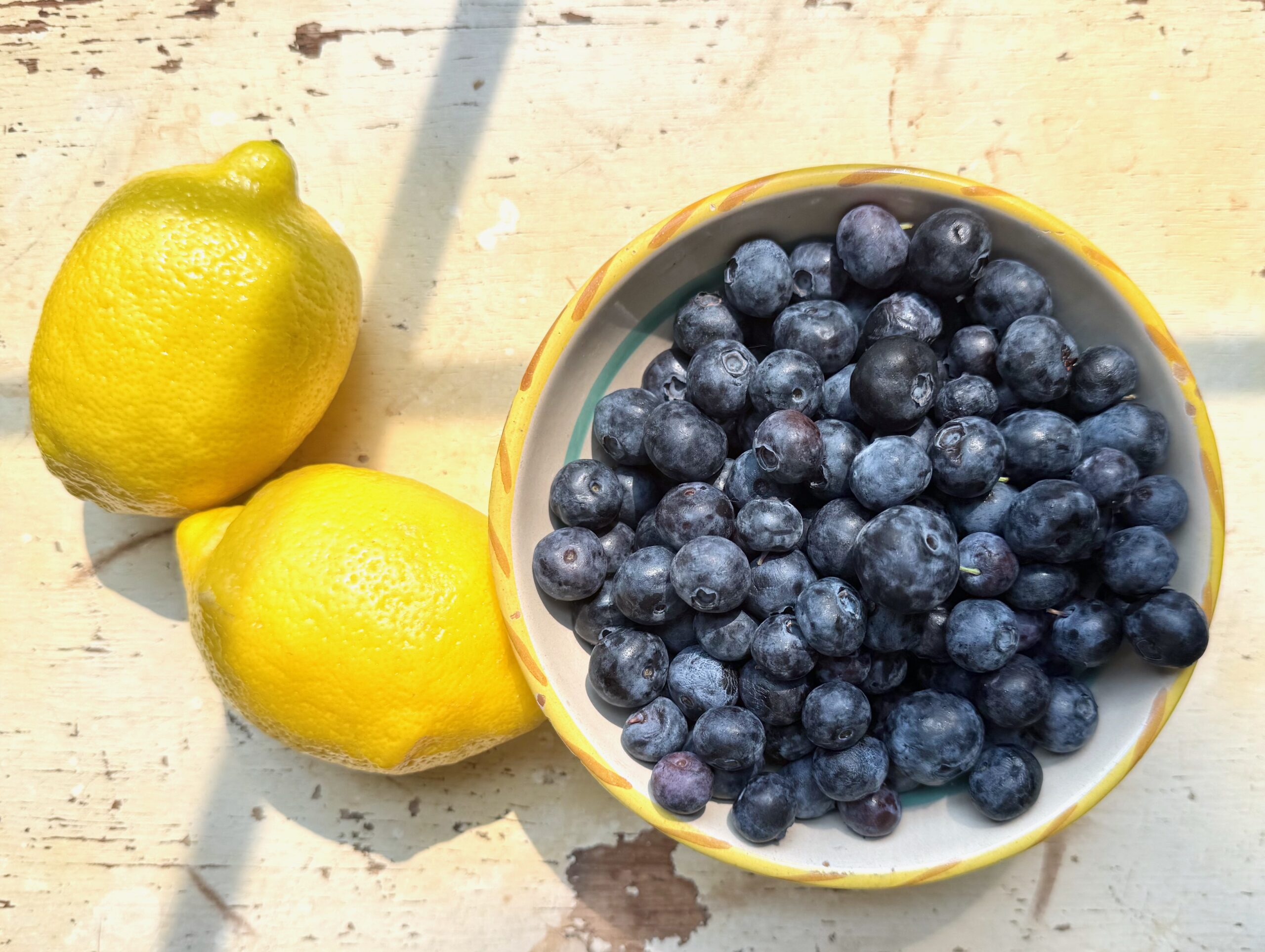 Most recipes for lemon curd call for yolks only. However, with eggs these days being elevated to Most Valued status, let’s use the whole egg instead. Blueberries cooked with a little sugar can be a dessert all on their own. Layered with lemon curd and whipped cream they become indispensable and not just for color.