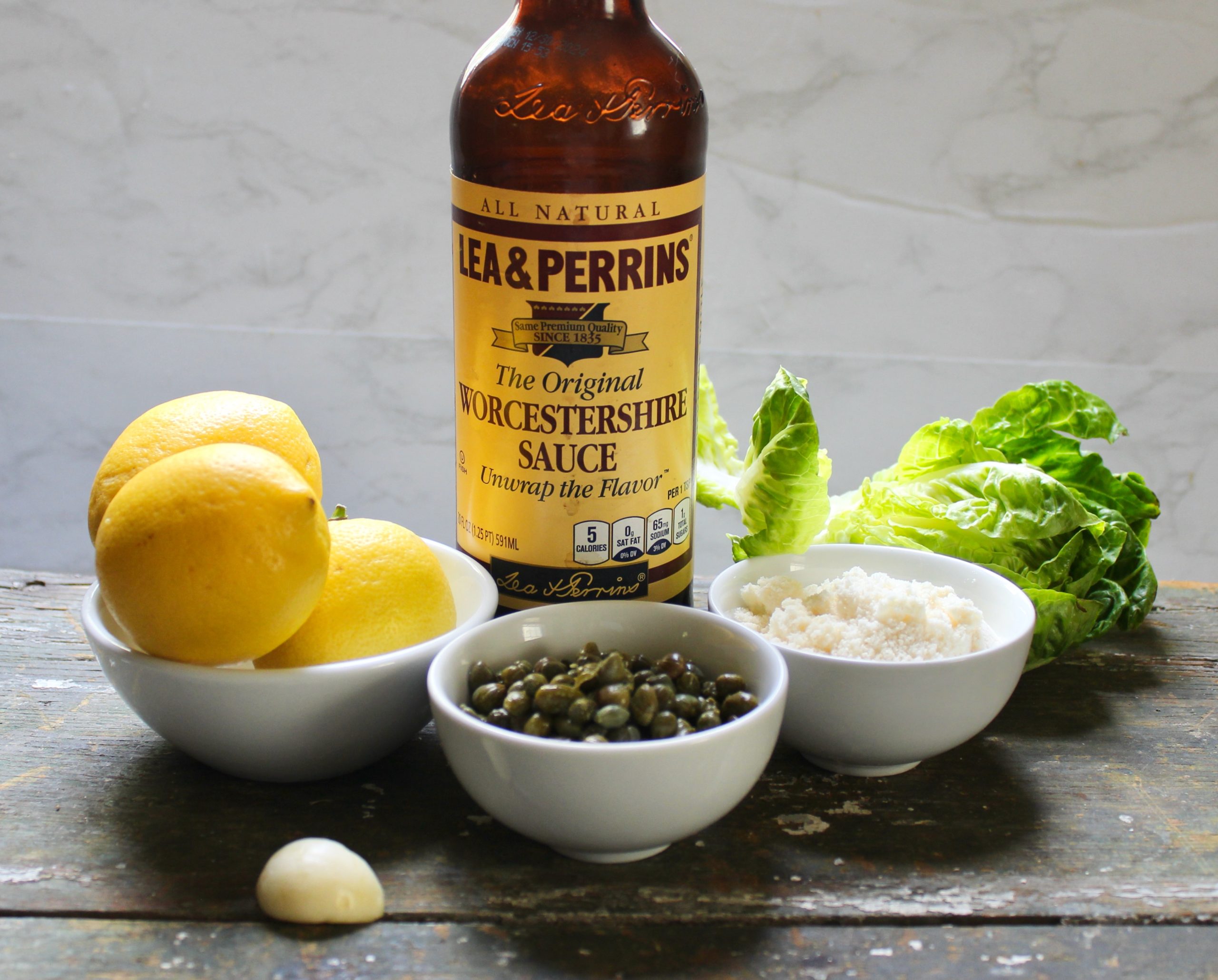 - Dressing may be made ahead one or two days : blend all ingredients in beaker attachment of hand blender (lemon, mayonnaise, parmesan, capers, worcestershire, garlic, pepper, oil).