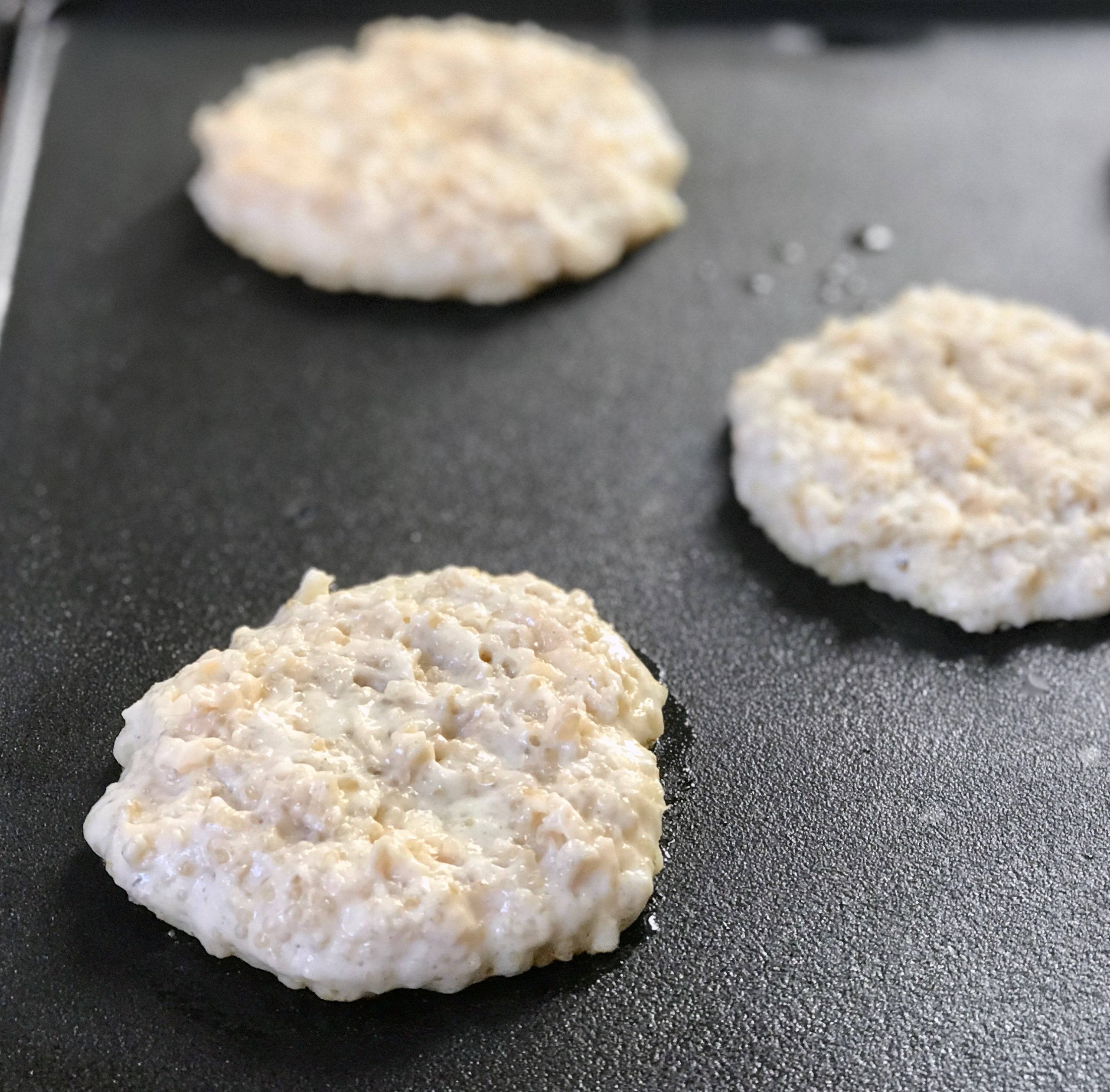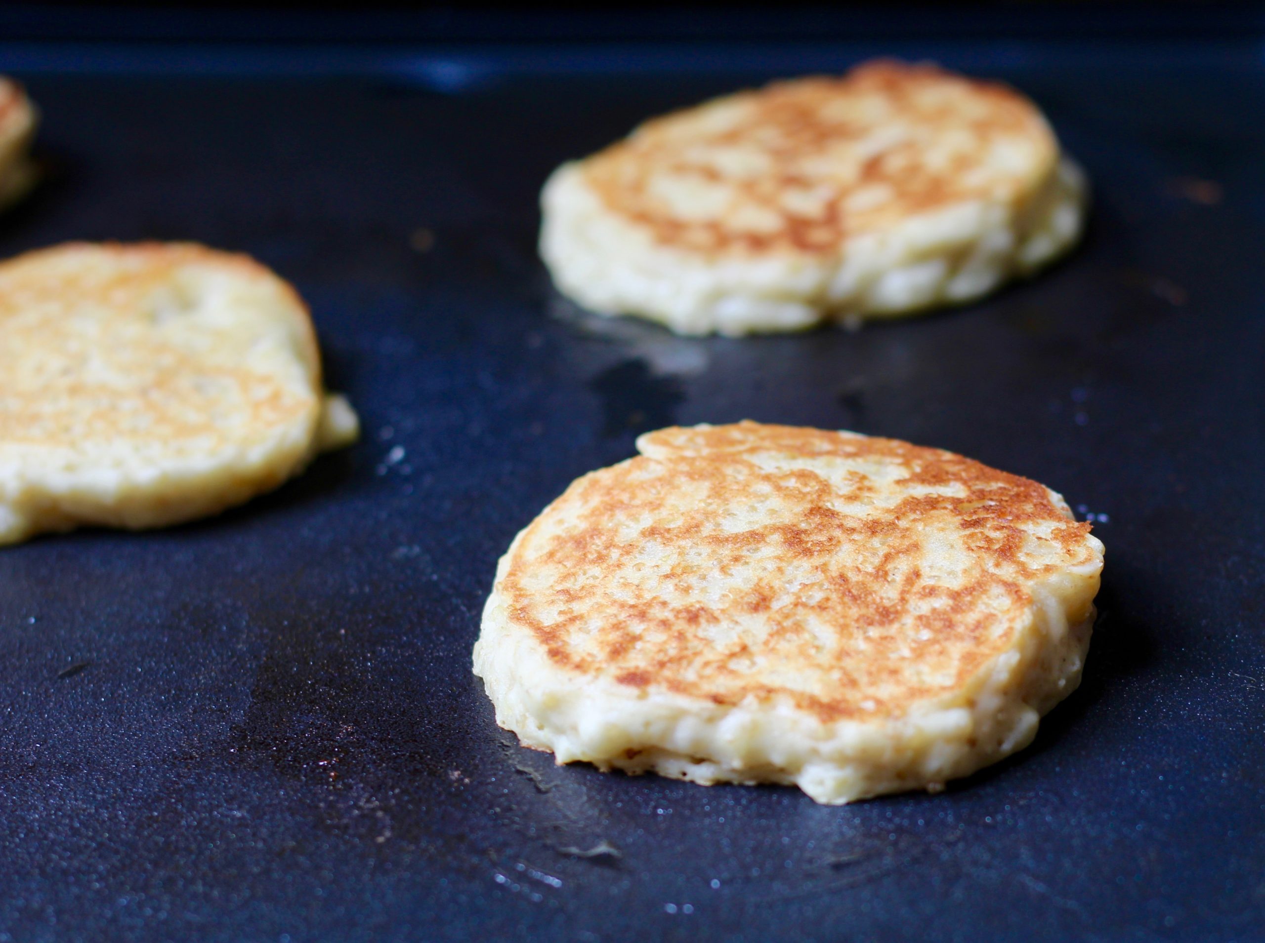 - Optionally, brush pancake cooking surfaces (each pancake about 2-3 inches apart) with melted clarified butter. Many griddles/cast iron skillets have nonstick or nicely seasoned surfaces so you may not need this step.
