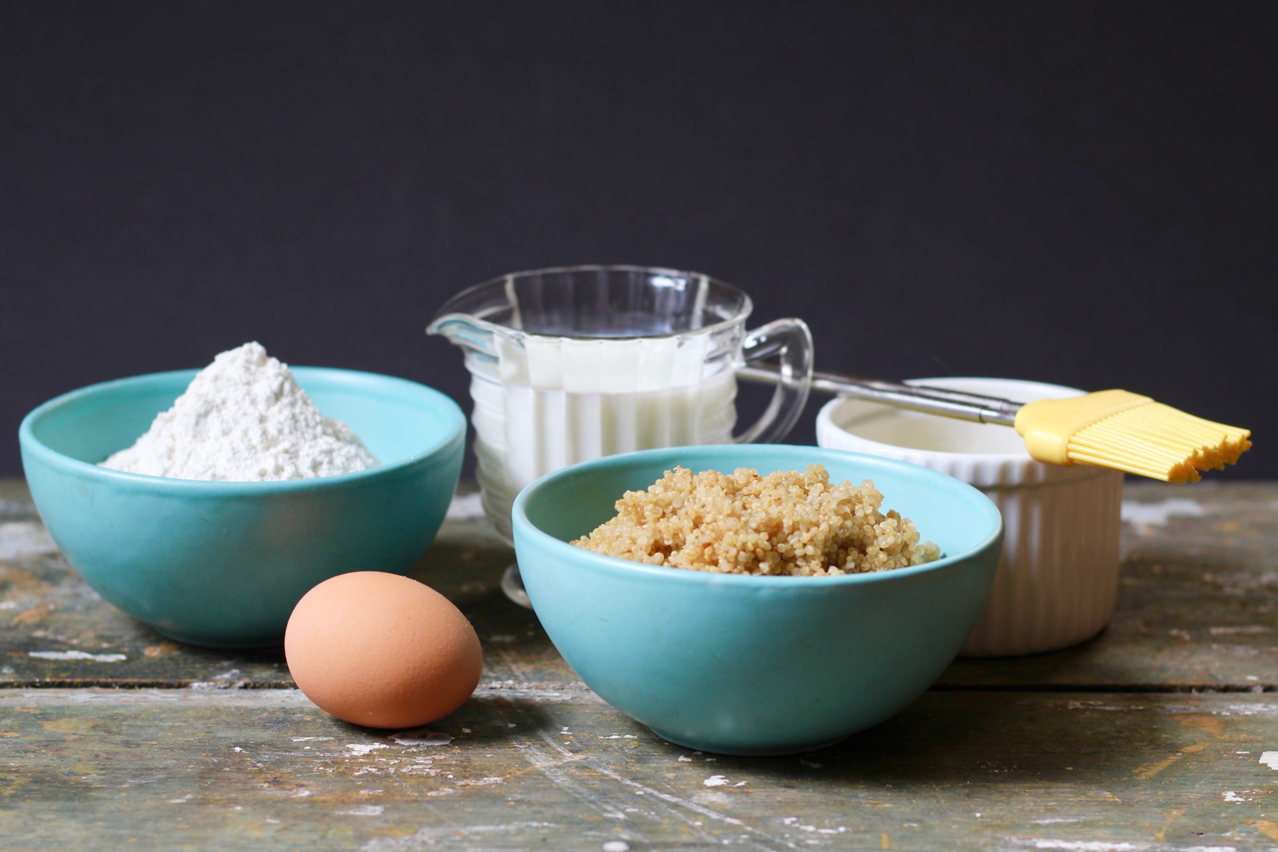- Combine wet with dry ingredients and add cooked quinoa; let batter rest 15-20 minutes while griddle heats.