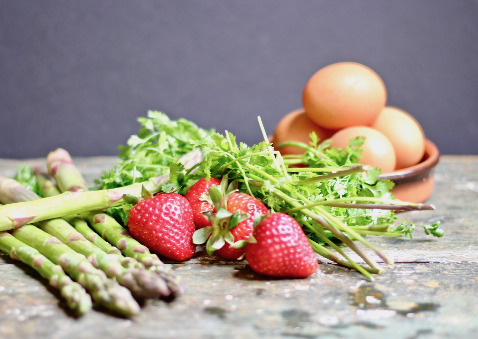 A friend recently consulted a nutritionist who advised her to eat like a king at breakfast, a prince at lunch and a pauper at dinner. I get it—we really should start our day with a hearty meal and end the day lightly to promote restful sleep and sensible habits. Can’t say I always eat a light dinner unless I’m dining at home because evenings out are my favorite type of entertainment and I want a little of everything! Small plates rule, I say. But let’s not examine my habits too closely unless we’re talking about breakfast. Big breakfasts are my thing, whether we’re serving breakfast tostadas or a breakfast salad or a loaded smoothie bowl. No sweet pastry for me. For weekend breakfast, the heartier the better, and what better way to say so long to spring than with local strawberries and asparagus in this quinoa bowl with jammy eggs. The six and a half minute egg is touted as perfectly cooked with a firm white and creamy yolk, but I give mine an extra 15 seconds of simmer because this perfect technique has occasionally yielded a stringy, gelatinous white which will not fly on my plate. No. So the six and three quarters egg is it for me! Use my described technique or use the best one which gives eggs to your liking. For superior flavor and freshness, local eggs are your friend. Sometimes they’re so fresh the shell adheres to the cooked egg, so I find a dash of cider vinegar in the simmering water helps creates a nice air pocket for better peeling.