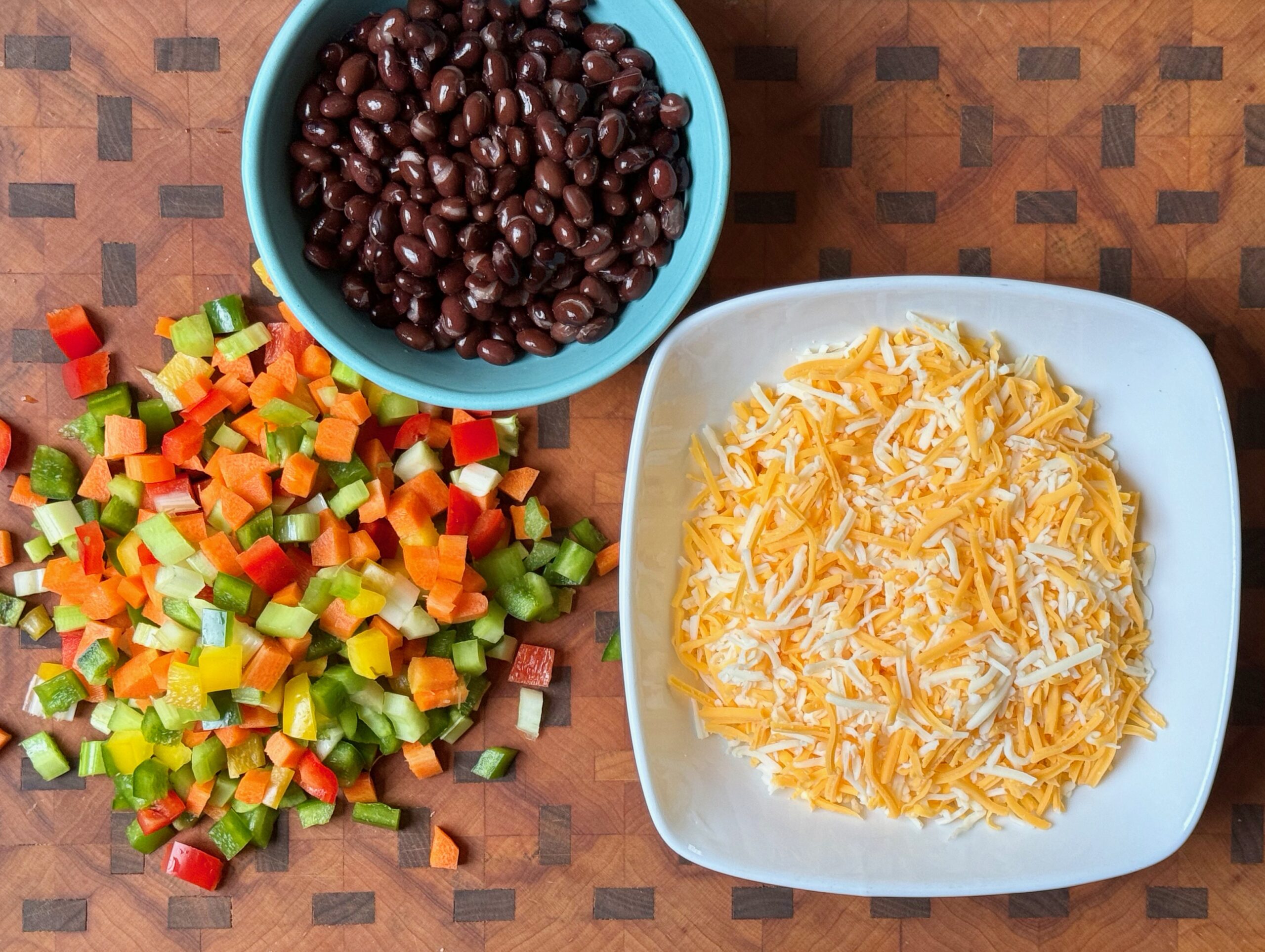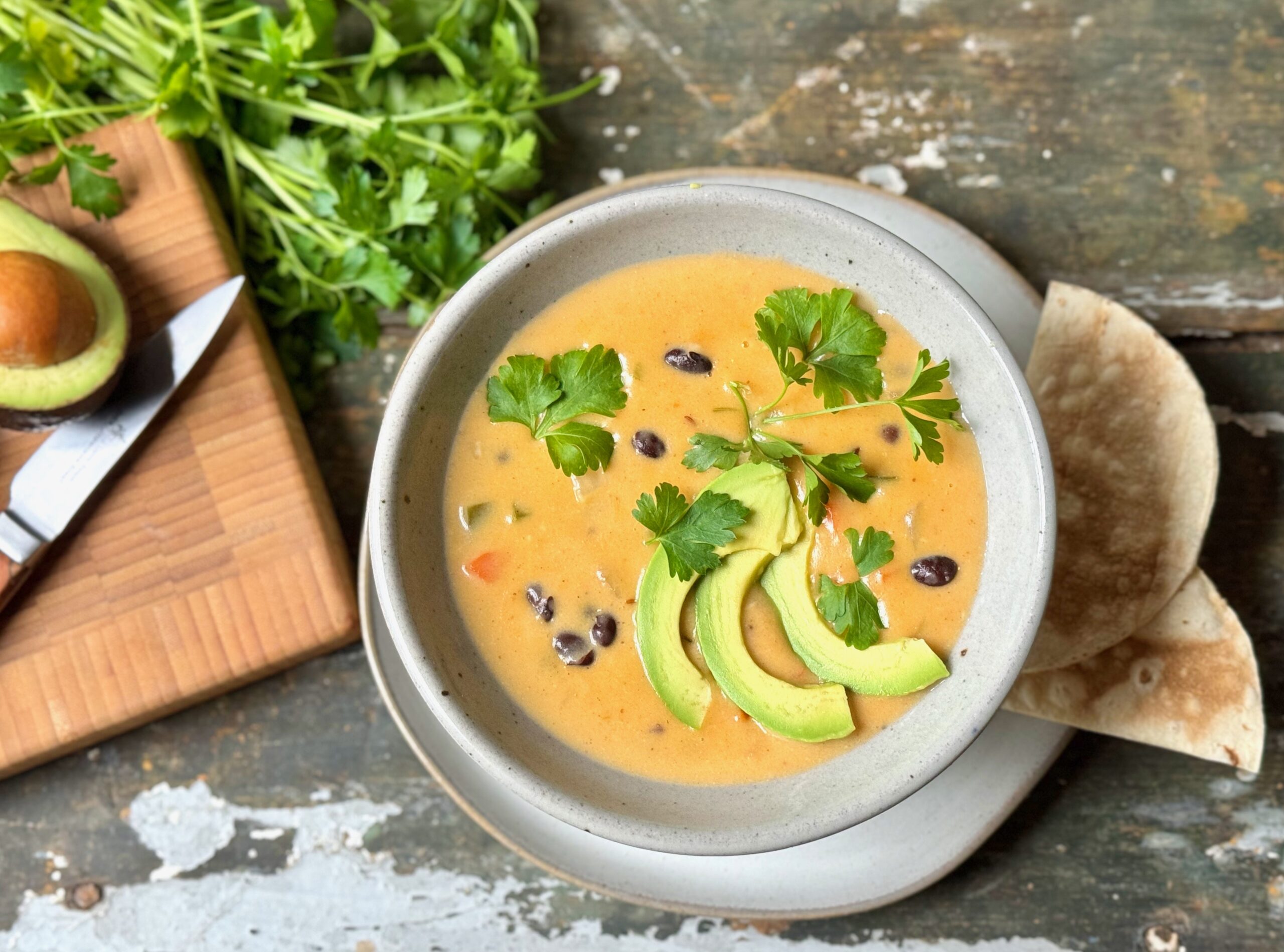 Black Bean Cheese Soup is loaded with colorful vegetables. Mexican blend cheese melts well and pre-shredded gets the prize for convenience.
