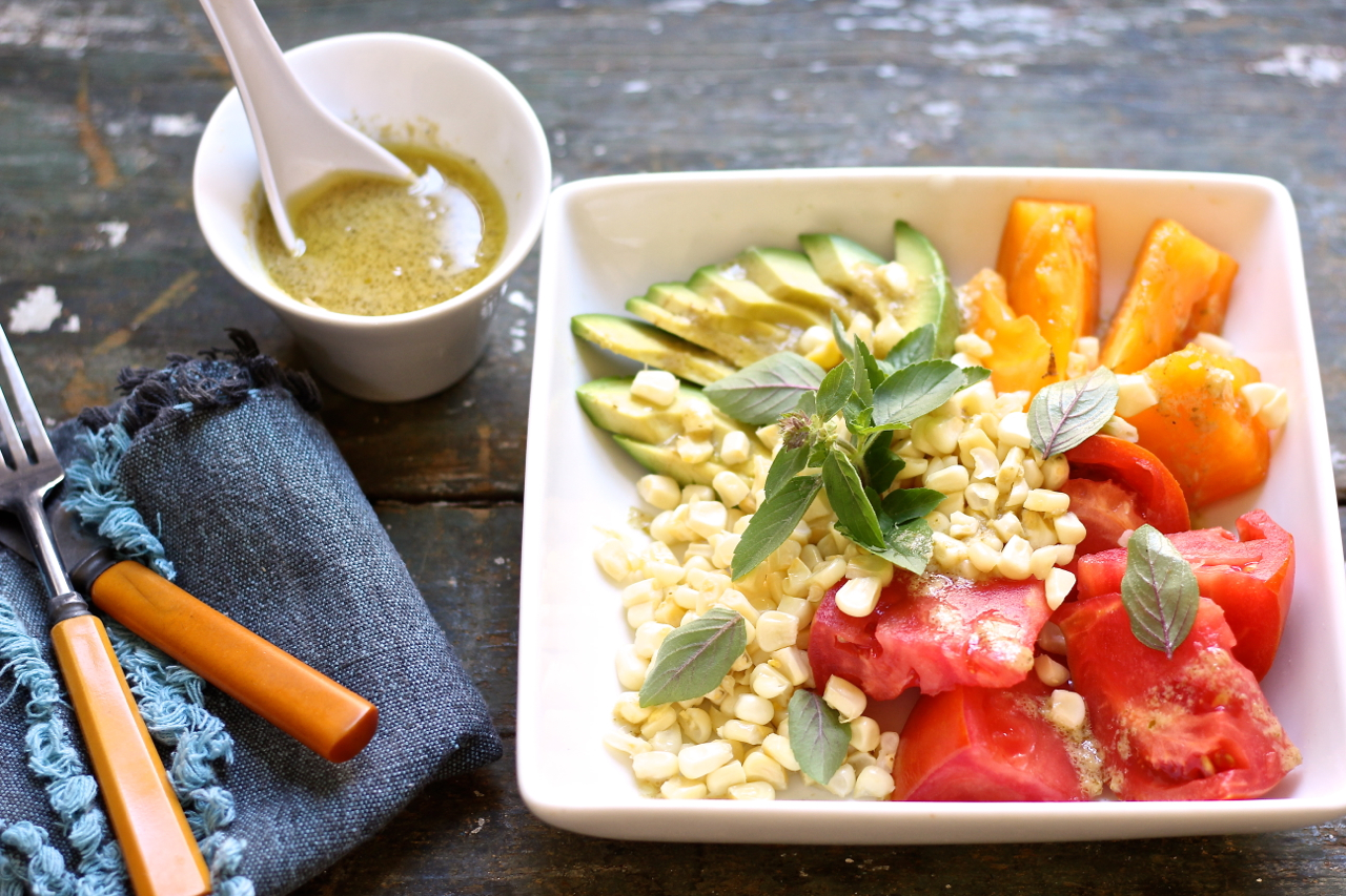 How lucky we are that corn and tomatoes are in season at the same time, because there is nothing better than an ear of buttered sweet corn next to sun ripened sliced tomatoes on your plate, adorned with nothing but a light sprinkle of your favorite salt.