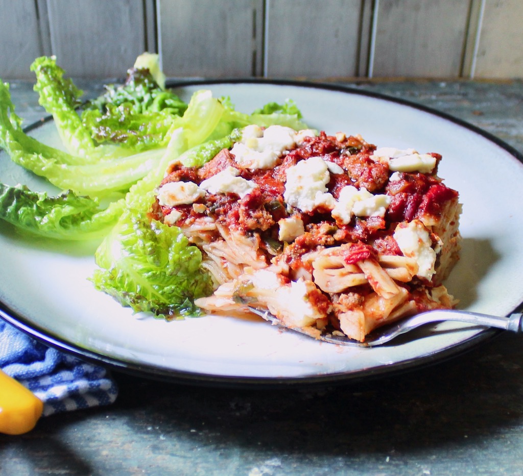 It would be easy to categorize this dish as a variation of macaroni and cheese, which is what we all tend to call pasta in a creamy, cheesy sauce. But there are veggies in this pasta, with a sauce made creamy from blended white beans and artichoke hearts, as well as feta cheese, and green peas and roasted red pepper nestled among the noodles. This, my friends, is not your mother’s mac and cheese. Continue reading