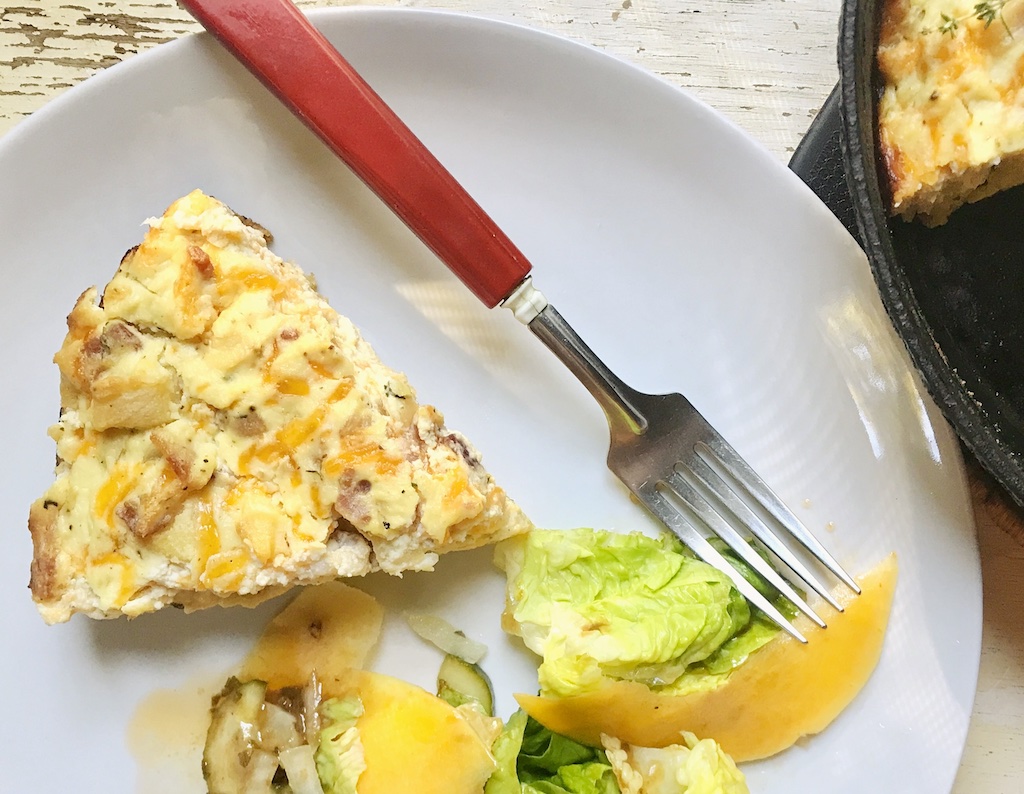 I have a tart which will serve as breakfast, brunch, appetizer, lunch or dinner. It can be made ahead and responds to all manner of substitutions. The words apple, bacon and cheese conjure cool weather comfort. This tart is a warm hug from the autumn kitchen. You can make this recipe your own with lots of other additions.