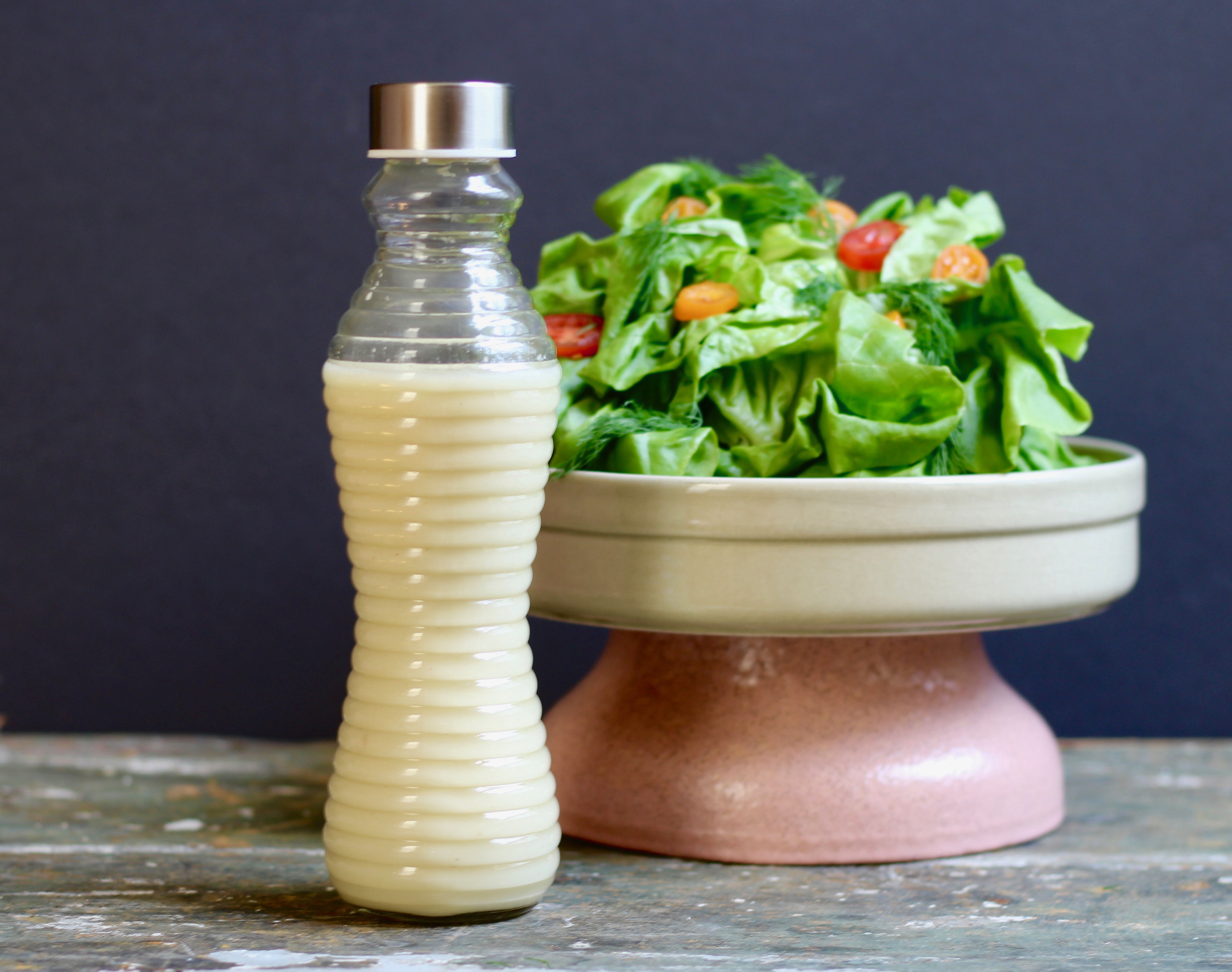 Michele made this dressing when she came over to our house and it was amazing. As she said in her post, it kept for several weeks (it may have been good longer but we ate it all) and was delicious on fresh, tender greens from our garden.